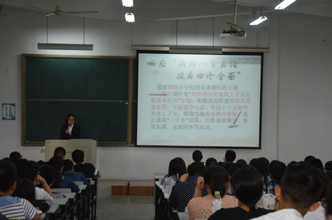 10月22日下午,经贸管理公司举行2015暑期实践成果展暨经验交流会。公司各年级辅导员、实践队指导老师、团学会干部及各班员工代表200多人参加会议。