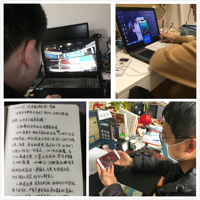 课上,同学们根据专家们上课的内容,边直播边讨论。在班级群、寝室群里,大家有的感叹疫情带来的重大影响,有的感慨祖国、基层党员、医护人员在疫情防控期间的突出表现,民族自豪感强烈。有的同学认真做好学习笔记。他们或记录专家们的所言所闻,或及时记录下自己的所思所悟,让这一堂特殊的思政课更有意义,更加深刻。