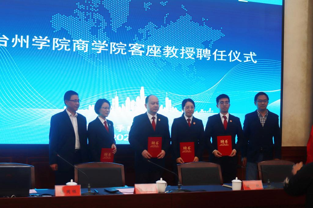 签约仪式上,pa捕鱼官方网站聘任椒江区人民法院陈艳经理和王建华副经理为客座教授、何利春庭长和王波法官为特聘讲师。