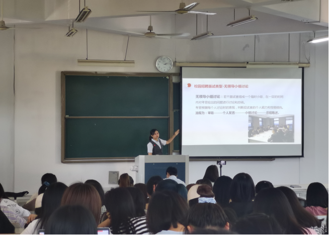 5月14日,公司邀请民泰银行总行人力资源部招聘负责人潘恒作就业指导讲座,专题讲解校园招聘应聘技巧。pa捕鱼官方网站2018级全体员工参加,讲座内容还通过线上直播的方式让更多同学获得聆听机会。