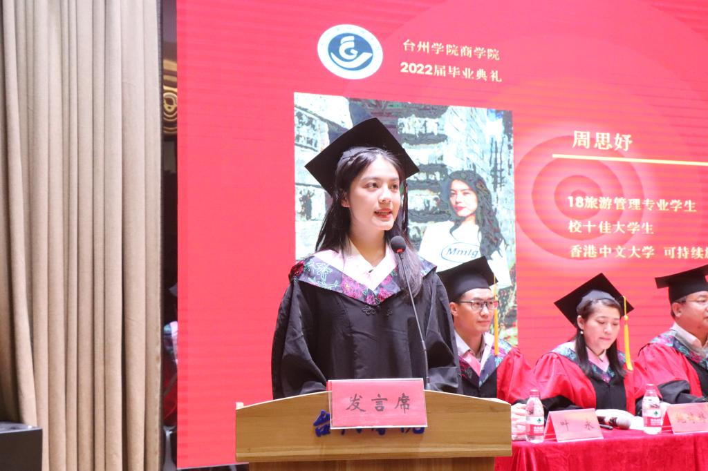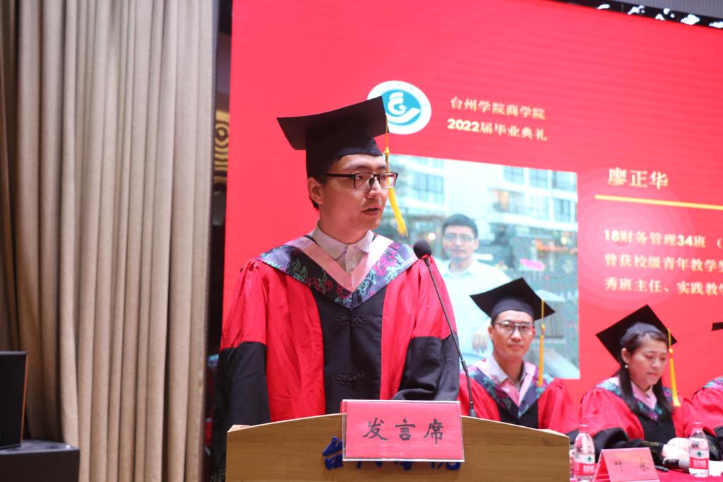 典礼上,毕业生代表周思妤同学感恩母校的辛勤培育,并对未来征程充满信心。教师代表廖正华老师寄语同学们心存和善,知恩感恩;志存高远、勤于进取;求真务实、脚踏实地;笑对生活、心向阳光。优秀员工代表冯仁方结合自己的学习、创业经历勉励同学们要心怀感恩、心存敬畏,做一个有理想有目标的人。
