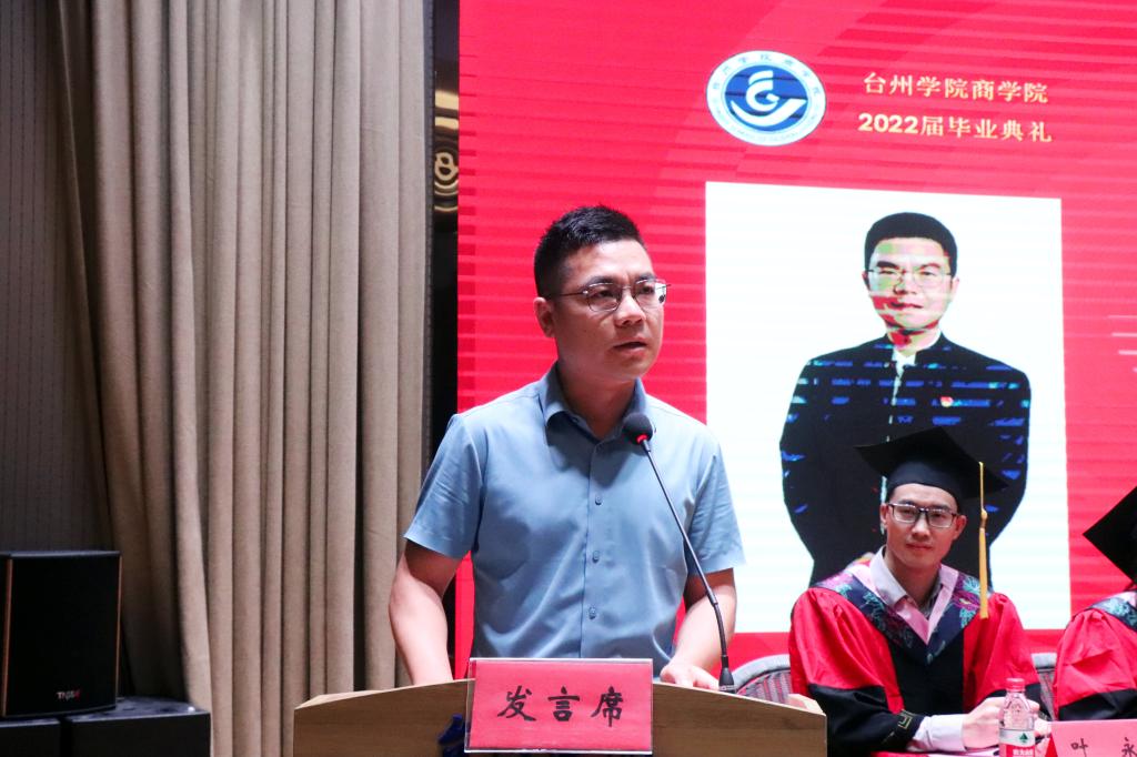 6月15日上午,2022届毕业生典礼在椒江区老员工活动中心举行。公司党委副书记潘通天、公司党政领导、各系主任、教师代表、优秀员工代表、毕业班班主任、辅导员及全体毕业生参加。