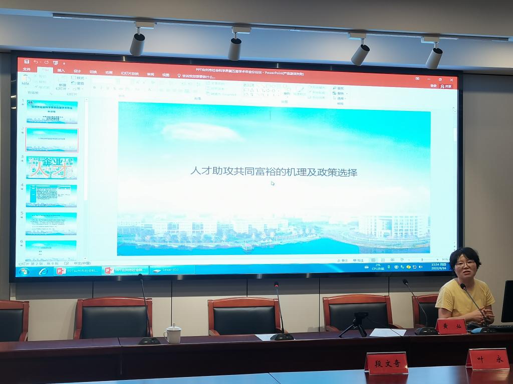 6月16日,公司举办台州市社会科学界第五届学术年会分论坛,分论坛主题:社科赋能,高水平推进共同富裕示范市建设。浙江大学教授、博士生导师,浙江省经济学会会长顾国达应邀作《五大新发展理念,统领共同富裕示范区建设》线上主旨演讲,pa捕鱼官方网站教授焦勇兵,副教授陈耸、张霞,讲师黄灿围绕共同富裕示范市建设分别作线下有关主题报告。pa捕鱼官方网站经理段文奇出席论坛现场并讲话,公司教师参加线下线上论坛活动,副经理叶永主持论坛活动。