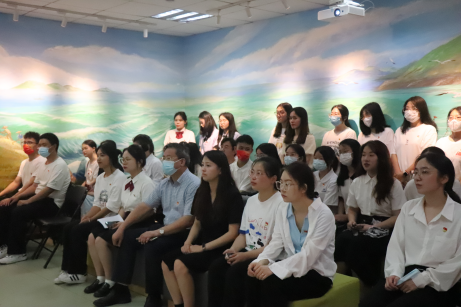 2018级国际经济与贸易魏逸丹代表毕业生党员发言,她回顾了四年大学追梦历程,在公司老师和党组织的培养下自己的历练和成长,号召全体毕业生党员,秉着一股“遇见深林,可以辟成平地,遇见旷野,可以栽种树木,遇见沙漠,可以开掘井泉”的冲劲,把伟大的建党精神融入到今后的学习、工作中,勇敢前行,昂扬奋进。