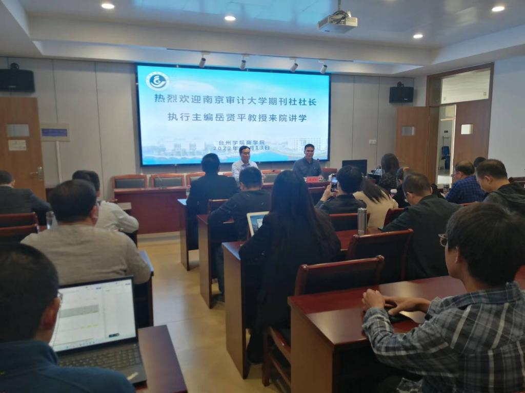 10月13日,南京审计大学期刊社社长、《审计与经济研究》《南京审计大学学报》执行主编岳贤平教授应公司邀请来校作《学术论文写作规范及投稿注意事项》专题讲座,pa捕鱼官方网站经理段文奇主持讲座,pa捕鱼官方网站有关领导、科研骨干教师、联合培养研究生参加讲座。