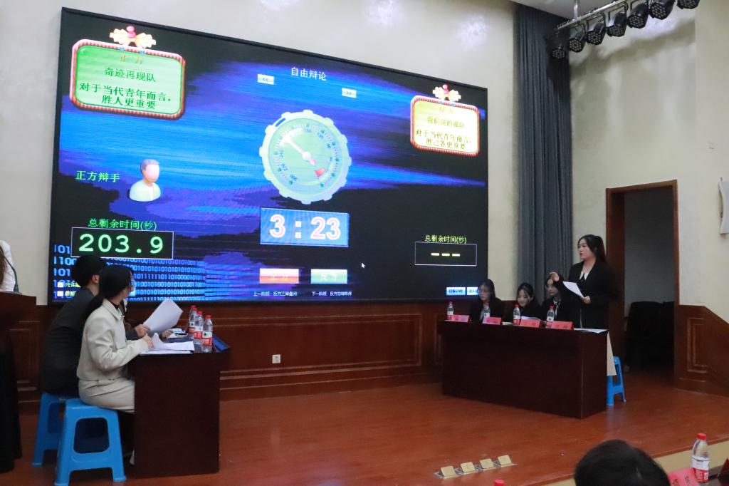 经过初赛和复赛的激烈角逐,8位选手脱颖而出,并分别组成正反双方进入决赛。双方围绕“对于当代青年,胜人/胜己更重要”的辩题展开了激烈的辩论,辩手们逻辑紧密、配合默契,在质询、对辩的环节中表现出清晰的思路和敏捷的辩才。正反双方针锋相对,互不相让,现场氛围紧张刺激。最终反方队伍凭借缜密的思辨逻辑和机智的应变能力摘得比赛桂冠。在点评环节,项民从多个角度对整场辩论赛进行点评,既对辩手们进行肯定,又给辩手们进行贴心的指导和宝贵的经验分享。
