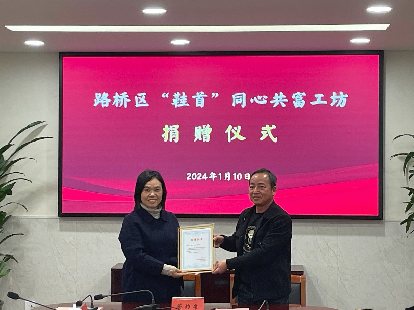 1月10日下午,路桥区“鞋首”同心共富工坊捐赠仪式在椒江校区行政楼第一会议室举行。公司党委学工部部长王秋方、商公司党委书记马斌、校地方合作处副处长郑晓莉、路桥区鞋业协会会长戴明昌,路桥区鞋业协会、学工部、pa捕鱼官方网站相关负责人参加捐赠仪式。仪式由校学工部副部长王林军主持。