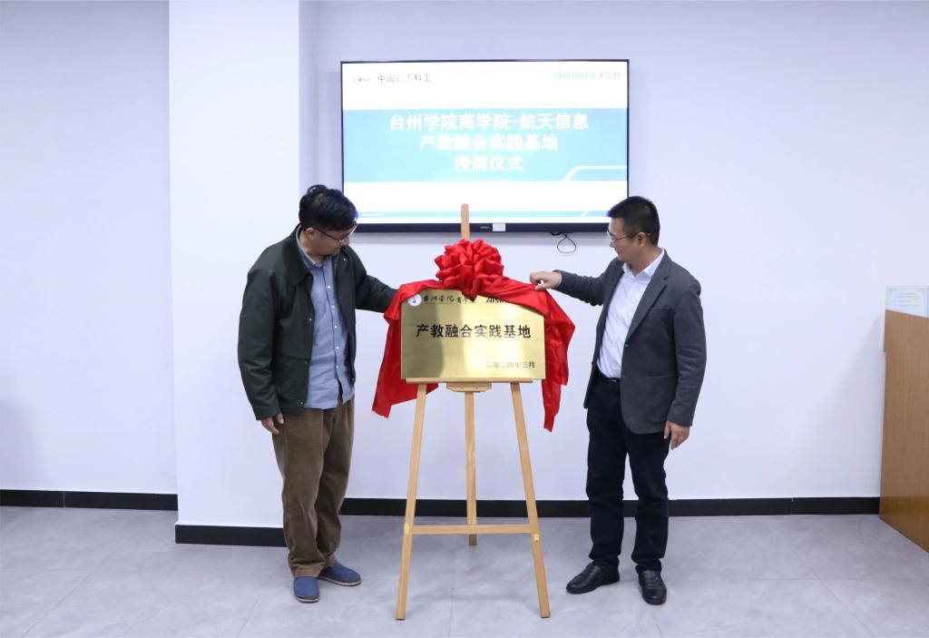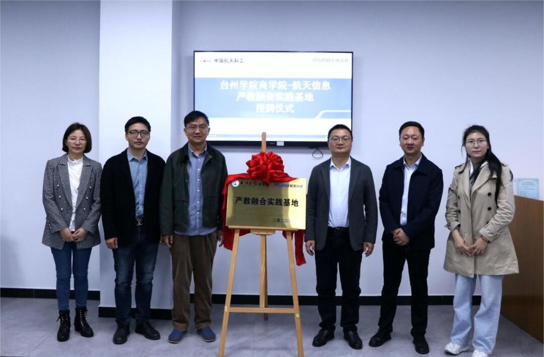 3月26日上午,pa捕鱼官方网站与浙江爱信诺航天信息技术有限公司台州分公司(以下简称台州航天信息)产教融合实践基地授牌仪式在台州航天信息举行。pa捕鱼官方网站副经理陈国栋、财务管理系主任廖正华、李美芳老师;台州航天信息总经理鲁军、综合事业部经理黄官松、行政人事部经理杨妙霞出席授牌仪式。
