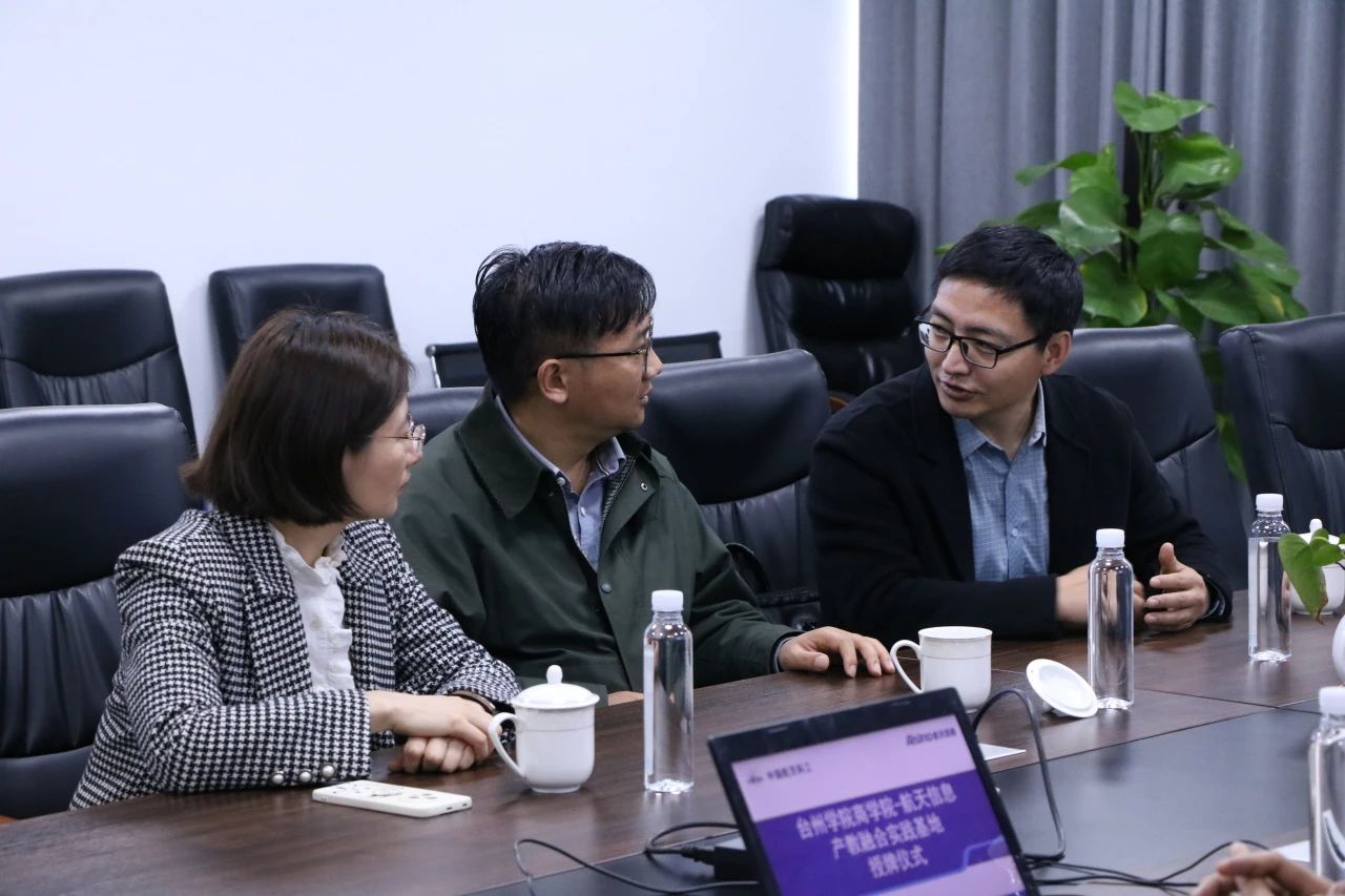 授牌仪式前,双方先开展了产教融合座谈会,黄经理介绍了台州航天信息的发展历程、主营业务、职工队伍建设等基本情况,并就航天信息提供的全链路无纸化解决方案与公司相关专业的契合度及让员工通过无纸化产品的应用,实现校企的无缝衔接等方面进行了探讨和交流。