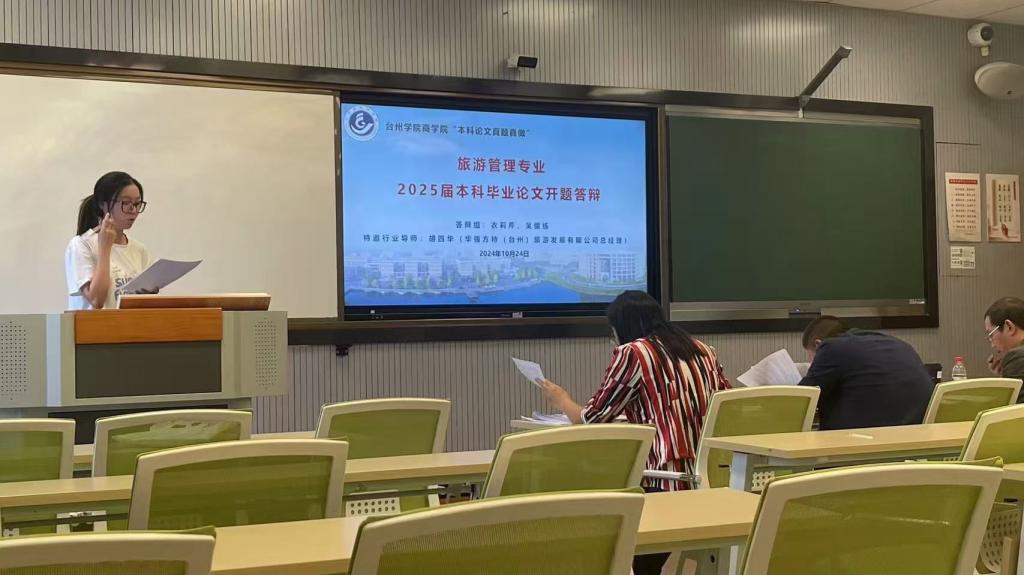 此次毕业论文开题答辩除了旅游系的全体教教师外,还特邀三位旅游行业资深专家——台州市农业农村局四级调研员张光根副局长、方远·台州大饭店潘高平总经理、华强方特(台州)旅游发展有限公司胡四华总经理等,组成毕业论文行业专家导师团。专家们聚焦行业现实难题与未来趋势,为员工毕业论文提供宝贵指导意见,确保选题紧贴实际,研究具有前瞻性和应用价值。