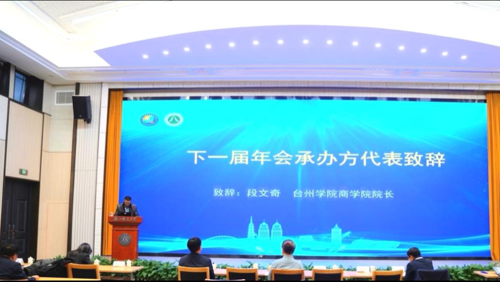 在闭幕式上,段文奇经理作为下一届年会承办方代表讲话。段文奇邀请与会嘉宾明年“追着阳光去台州”,参加第十七届浙江省国际贸易年会。他向与会专家学者介绍了台州的历史文化和经济发展、PA捕鱼官网入口的办学理念和pa捕鱼官方网站的发展情况。讲话最后,段文奇再次诚挚邀请各位专家学者2025年齐聚PA捕鱼官网入口,共飨学术交流盛宴。
