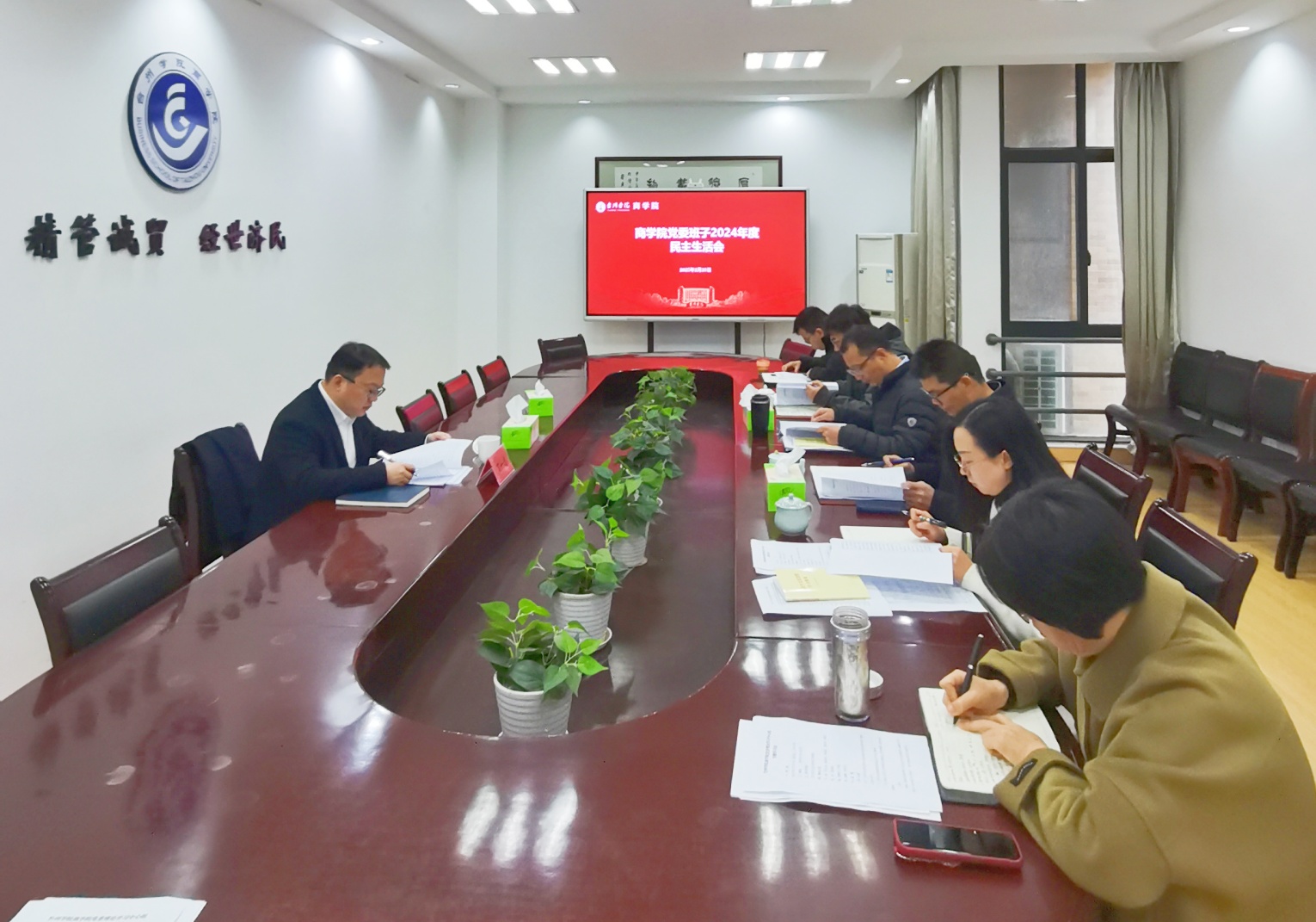 商公司党委高度重视本次民主生活会,会前公司党委理论学习中心组举行专题学习会,重点学习贯彻习近平新时代中国特色社会主义思想和党的二十届三中全会精神,围绕贯彻落实习近平总书记重要讲话重要指示批示精神和考察浙江时提出的“4+1”重要要求,聚焦落实省委“一个首要任务、三个主攻方向、两个根本”工作要求,团结带领公司教职员工,大力弘扬“六干精神”“四千精神”,与会人员分享交流学习体会,为开好此次民主生活会打牢思想基础。班子成员之间开展谈心谈话,全面梳理检视问题、深刻剖析典型案例、认真撰写班子对照检查材料和班子成员个人发言提纲。
