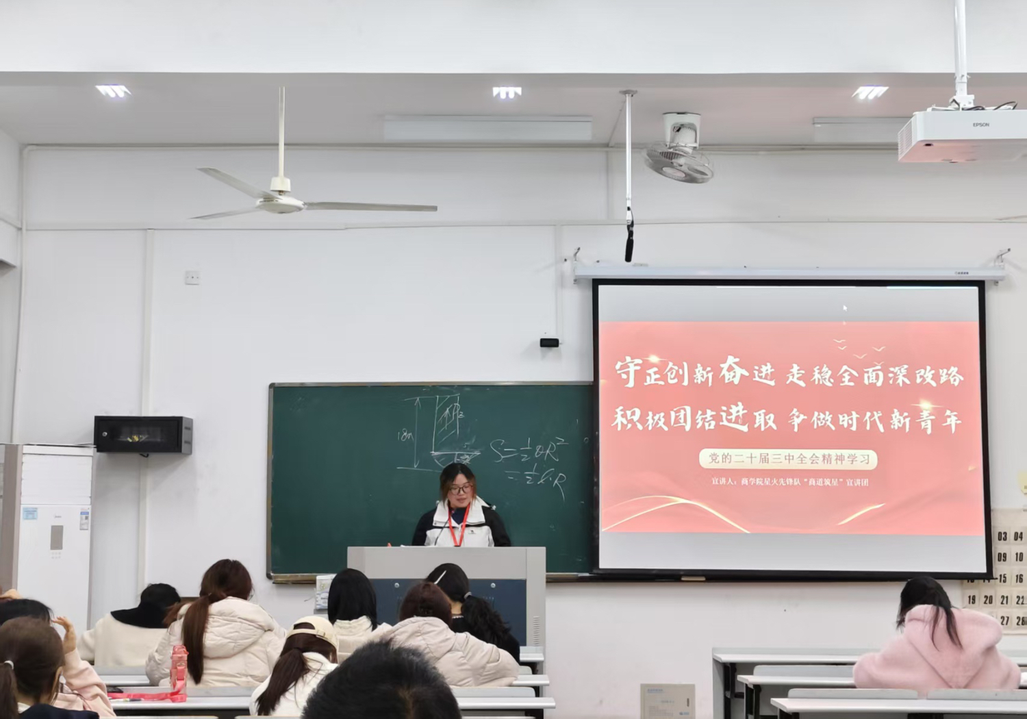 为深入学习贯彻党的二十大精神,引导青年学子深刻领会“守正、创新、奋进”的时代内涵,近日,星火先锋队“商道筑星”宣讲团走进pa捕鱼官方网站各班级,开展了一场别开生面的党的二十届三中全会精神主题宣讲活动。