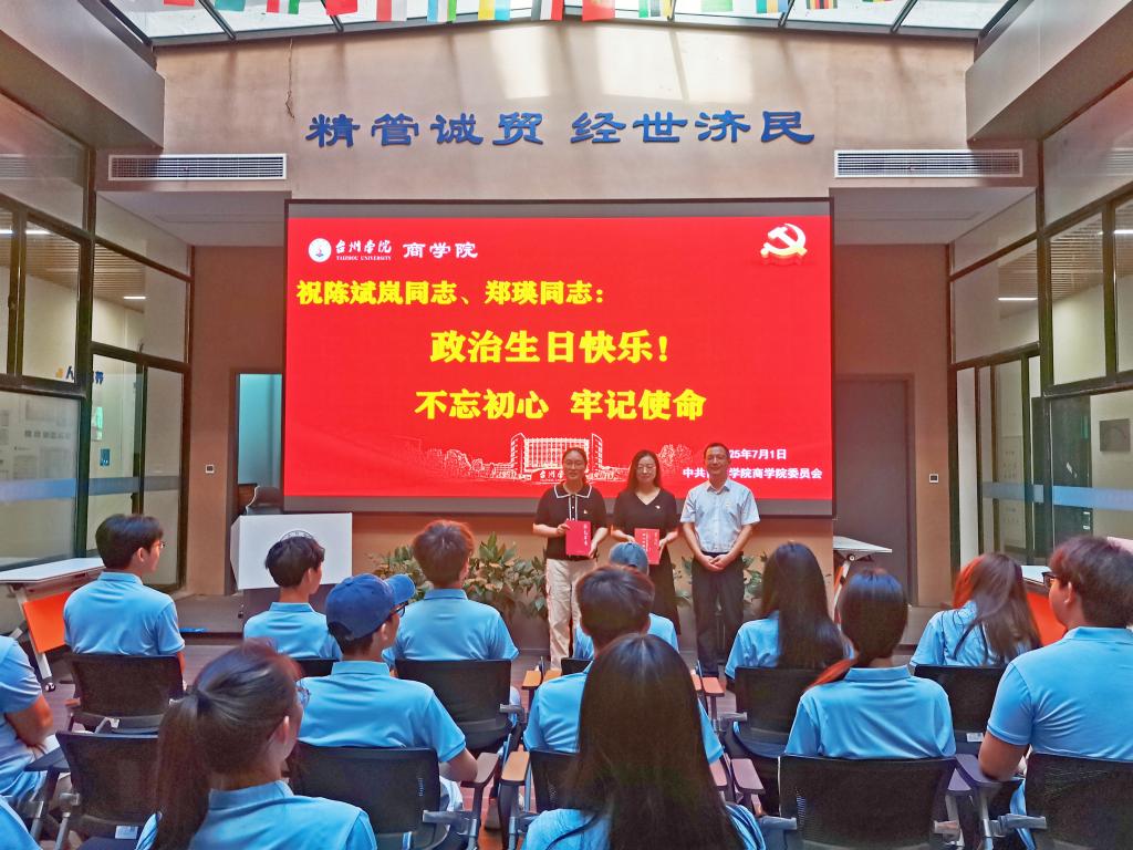 7月1日上午,公司党委为7月入党的陈斌岚、郑瑛2名教工党员举办政治生日会。活动现场,马斌书记为两位党员送上《红色初心》等理论学习书籍,共同重温入党申请书片段。通过“送书籍、忆初心、谈感悟”的仪式化流程,进一步强化党员“第一身份”意识,推动教工党员在教学科研、管理服务中践行“为党育人、为国育才”使命。