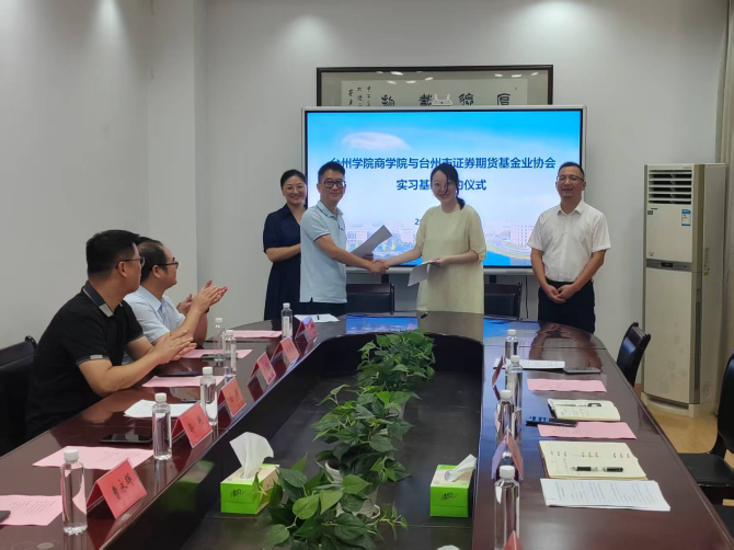 8月7日上午,pa捕鱼官方网站与台州市证券期货基金业协会实践教育基地签约仪式在pa捕鱼官方网站隆重举行。PA捕鱼官网入口商公司党委书记马斌、副经理陈国栋、金融系副主任王耀华,以及台州市金融发展中心副主任郭艳、台州市证券期货基金业协会轮值会长、副会长、秘书长、监事长单位代表等共同出席仪式。