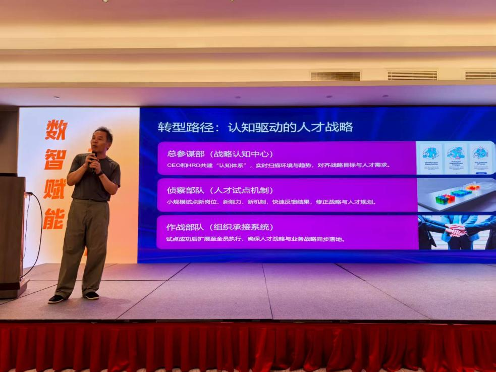 会上,pa捕鱼官方网站王呈斌教授以“数智时代战略人力资源管理挑战与应对”为主题作精彩报告。王呈斌教授开篇阐述数智时代背景,强调AI、大数据等技术迅猛发展,企业“战略×人力资源”体系需与数智时代紧密契合,以适应新的运行逻辑。通过对比数智时代与工业时代,王呈斌教授深入剖析了CEO面临的四大战略困境:环境变化加速、战略有效性减弱、执行力与KPI冲突凸显、预判能力存在缺陷。针对这些问题,他提出企业管理者应向CCO(首席认知官)转型,通过认知驱动的人才战略破局。同时,HRD需从传统的“人力管控者”转变为“认知驱动者”,发挥好CEO“认知翻译官”的作用。