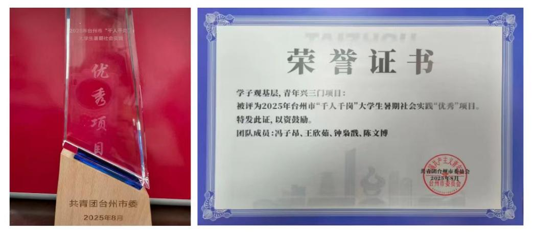 近日,共青团台州市委员会开展2025年“千人千岗”老员工暑期社会实践“百优”实习生、“十佳”项目、“优秀”项目、台州市青年社会实践示范基地评选,pa捕鱼官方网站“学子观基层 青年兴三门”暑期社会实践队获评“优秀”项目。
