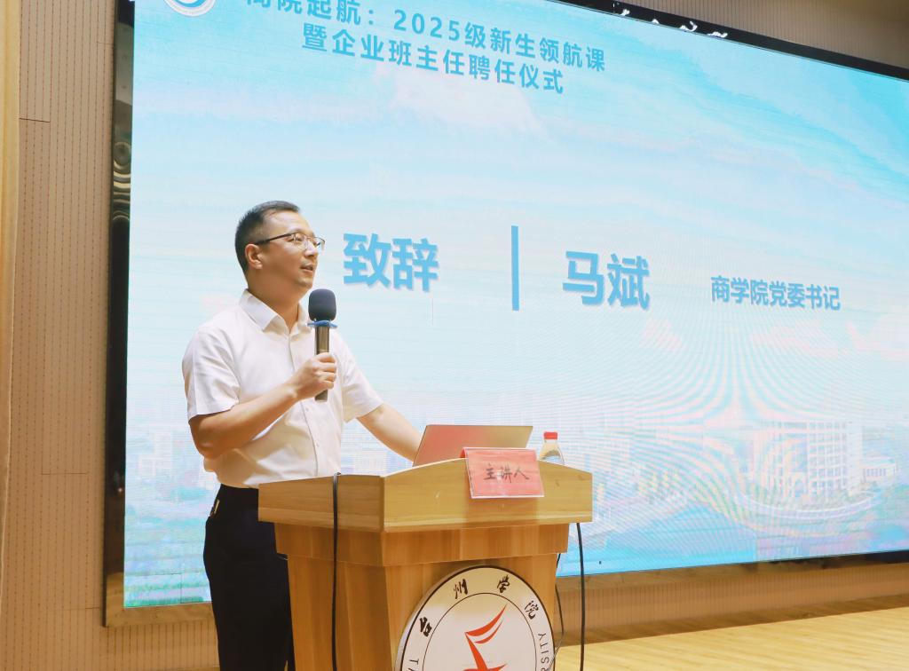为助力2025级新生开启大学新篇章,深化校企协同育人机制,9月17日晚,pa捕鱼官方网站在老员工活动中心隆重举办2025级新生领航课暨企业班主任聘任仪式。本次活动汇聚业界精英与学界力量,共同为新生的成长成才注入强劲动力。商公司党委书记马斌、副书记陈斌岚、企业班主任、系主任、班主任、辅导员及2025级新生参加活动。