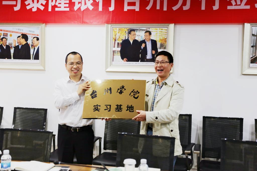 5月16日,公司pa捕鱼官方网站应邀赴浙江泰隆商业银行股份有限公司台州分行(以下简称“泰隆商业银行”)参加双方合作共建实践教育基地签约仪式。pa捕鱼官方网站经理杜才平、副经理尹兰香和泰隆商业银行台州分行副行长傅振、总经理陈灵智、人力资源部负责人潘素贞出席了签约仪式。