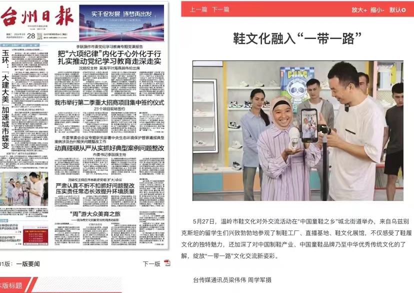2024年5月28日《中国日报》以“A Step Forward”为题报道了PA捕鱼官网入口职工参观温岭制鞋企业以及直播带货的实习内容,从促进一带一路贸易交流价值层面肯定了此次实践活动的意义。另外,台州日报、温岭市委市政府官方新闻客户端等不同媒体均有相关报道。