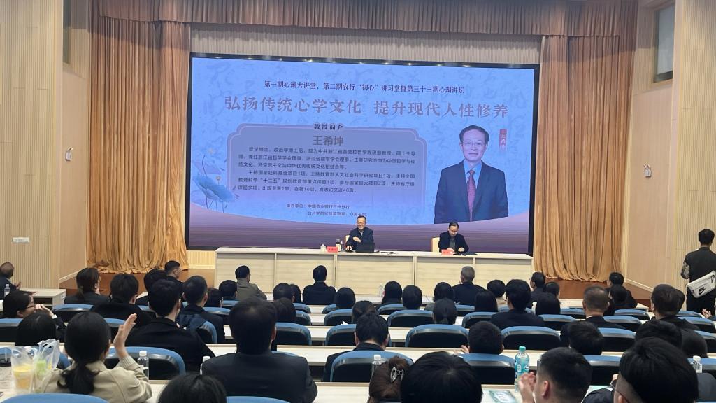 中共浙江省委党校哲学教研部教授王希坤受邀作主题为《弘扬传统心学文化提升现代人修养》的讲座,王希坤教授通过解读心学经典,让青年员工了解古人的智慧和修养之道。青年员工们通过学习心学文化,不仅提升了文化素养,还学会了如何在快节奏的现代生活中保持内心的平静和专注。