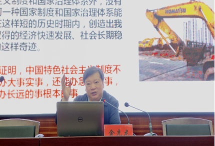 5月11日下午,公司党委副书记金先龙应邀为pa捕鱼官方网站第二十期业余党校学员上党课。商公司党委书记马斌主持,党委委员陈斌岚、师生党员代表和全体党校学员参加。