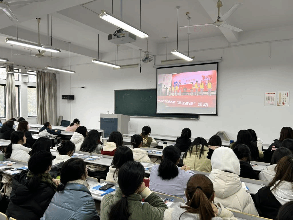 12月4日,各班同步连线教育部在北京设立的“宪法晨读”活动主会场参与活动。伴随着庄严的国歌声,“宪法晨读”活动正式拉开序幕。 同学们在“宪法晨读”的朗朗读书声中领会宪法精神,明白了宪法是我国的根本大法,是治国安邦的总章程,是保持国家统一、民族团结、经济发展、社会进步和长治久安的法律基础,是中国共产党执政兴国,团结带领全国各族人民建设中国特色社会主义的法律保障。