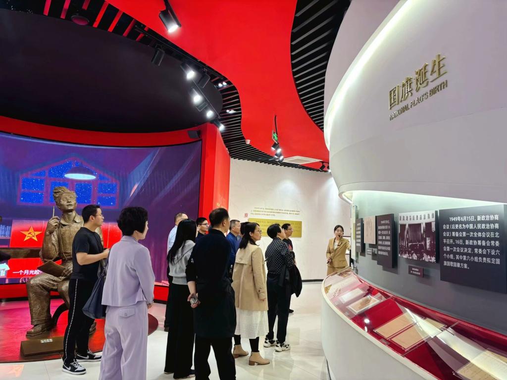 红色象征革命,星星象征光明和希望,国旗背后还蕴含着爱国、团结、奋进等重要的精神内涵,它是国家的象征,是每一个中国人的骄傲。在讲解员的引导下,党员们认真聆听国旗诞生故事、学习国旗标准规范、了解国旗深刻涵义,感受到曾联松先生满腔爱国情怀和对未来的无限憧憬。