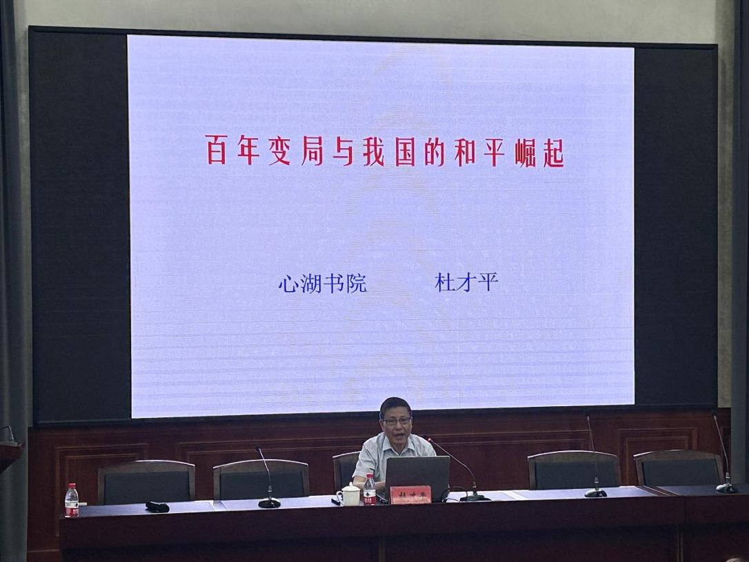 为了加强入党积极分子的党性教育,增进对当前国际形势与我国发展战略的理解,5月23日,pa捕鱼官方网站特邀心湖书院经理杜才平作“百年变局与我国的和平崛起”专题授课,党课理论丰富、深入浅出,学员表示受益匪浅。