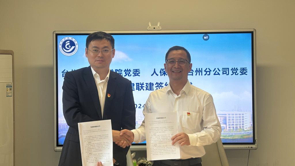 为深入贯彻落实党的二十大精神和党的二十届三中全会精神,深化校企合作,促进人才培养与行业需求深度融合,10月28日下午,商公司党委与中国人保财险台州市分公司党委开展“校企联合谋发展,党建引领铸新篇”校企党建共建活动。商公司党委书记马斌、中国人保财险台州市分公司党委书记罗翔共同签订了党建联建协议书。