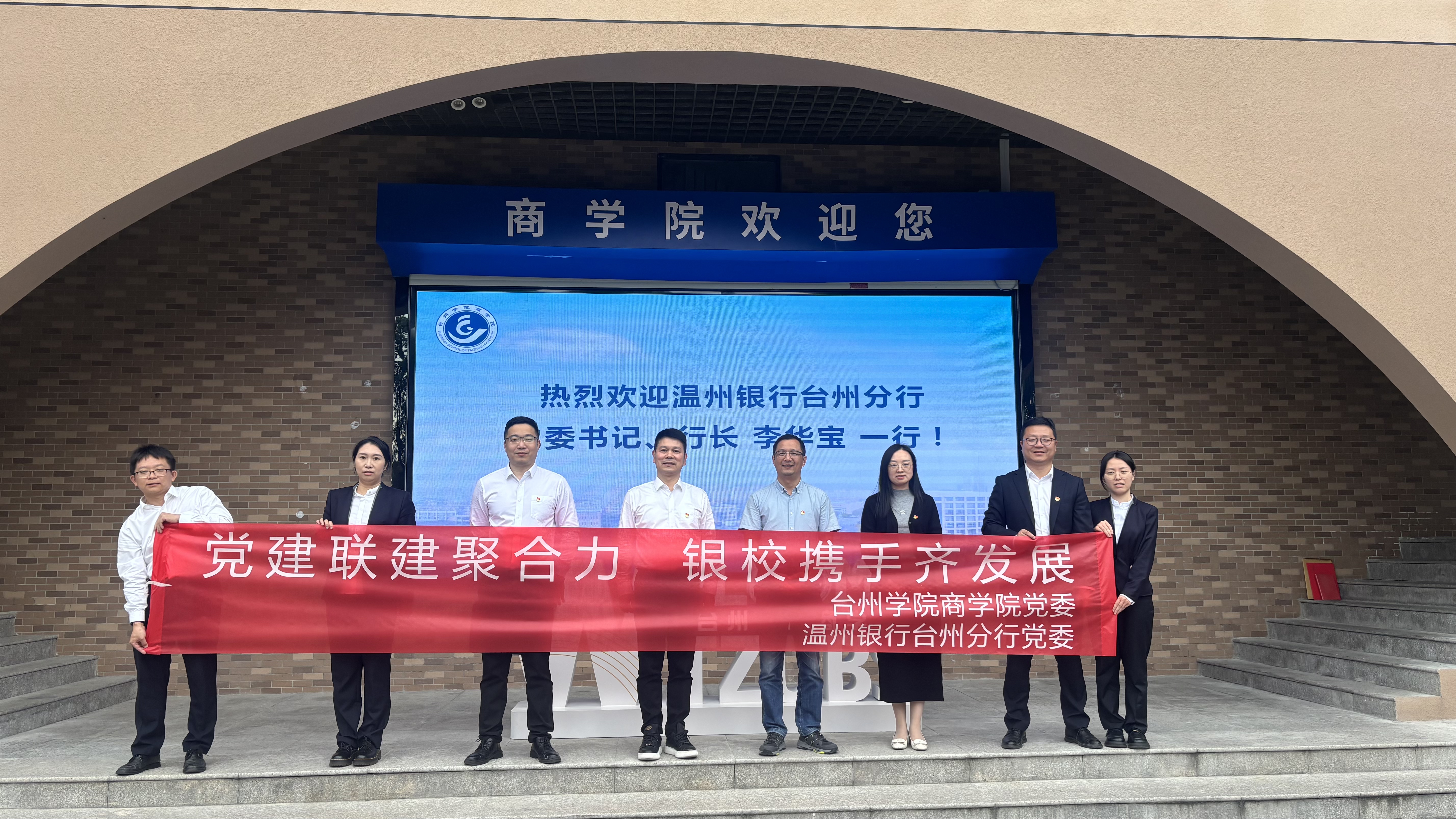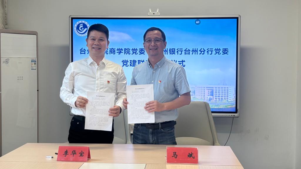 为更好发挥校企党建联建优势,深化产学融合,构建协同育人机制,11月11日,商公司党委与温州银行台州分行党委联合开展“党建联建聚合力,银校携手齐发展”党建联建活动。商公司党委书记马斌、温州银行台州分行党委书记、行长李华宝共同签订了党建联建协议书。