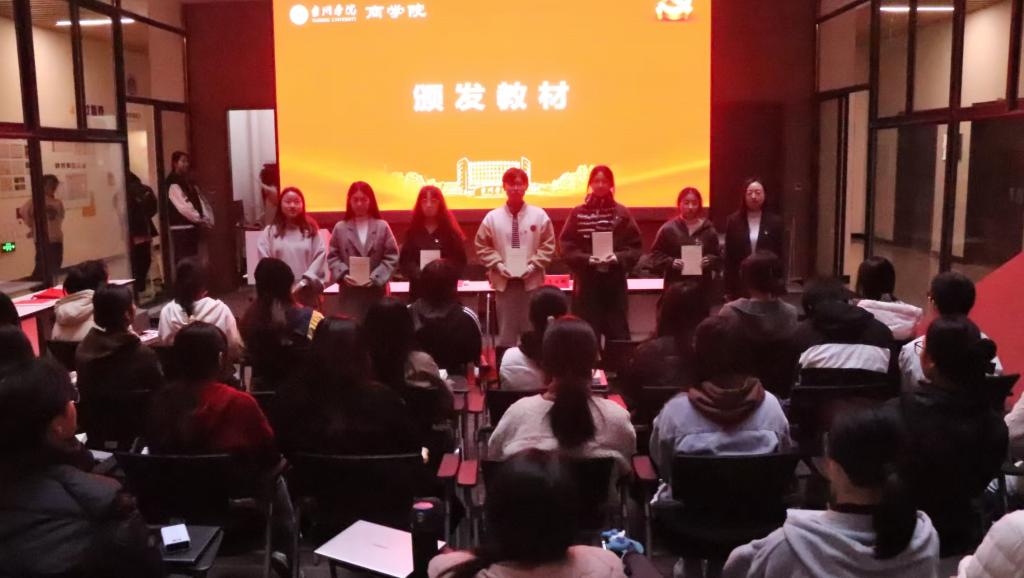宣誓仪式在气势磅礴的国际歌中正式开始。在陈斌岚书记的领誓下,全体预备党员右手握拳,面向党旗,齐声念出入党誓词:“我志愿加入中国共产党,拥护党的纲领,遵守党的章程……为共产主义奋斗终身,随时准备为党和人民牺牲一切,永不叛党。”字字铿锵,句句千钧,表达了他们对党的无限忠诚和为共产主义事业奋斗终身的坚定决心,气氛热烈,振奋人心。紧接着,陈书记为新党员代表颁发党徽,这一神圣的时刻,新党员们感受到了党组织的信任与期望。同时,陈书记还给各支部代表赠书,为新党员们提供了进一步学习党的理论和知识的宝贵资源。