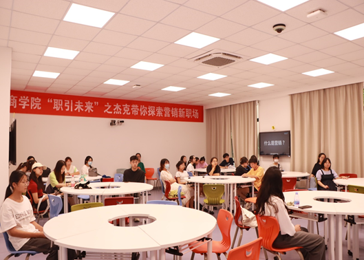 9月21日,pa捕鱼官方网站“职引未来”系列讲座第五讲特邀杰克股份营销总政委崔瑾为国际经济与贸易专业员工授课,本次授课内容围绕营销岗位展开。