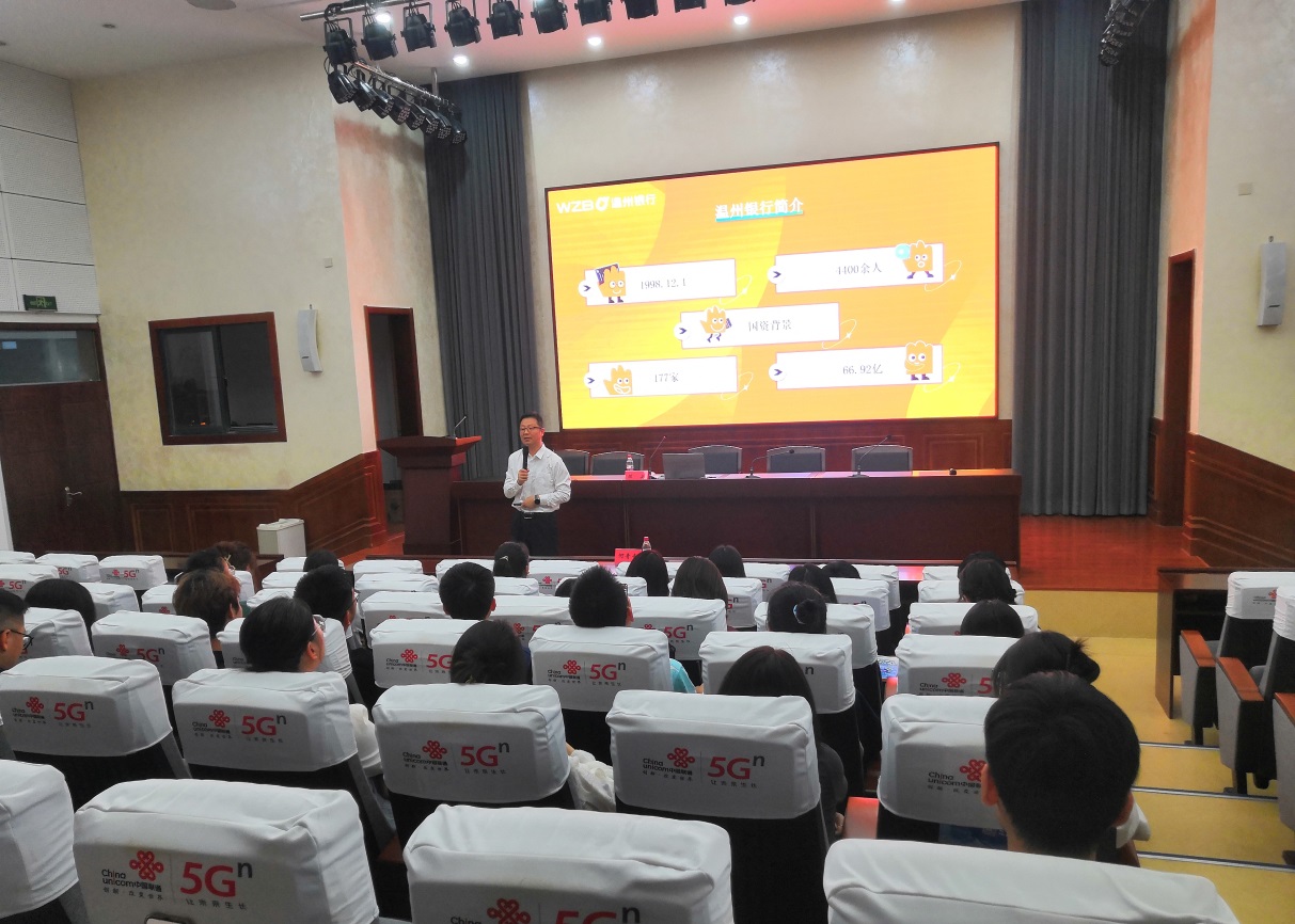 随后,温州银行台州分行陈子丹向同学们介绍了支付系统、存款保险、人民币防伪识别以及如何防范电信网络诈骗等金融知识,给同学们带来知识满满的一堂课。