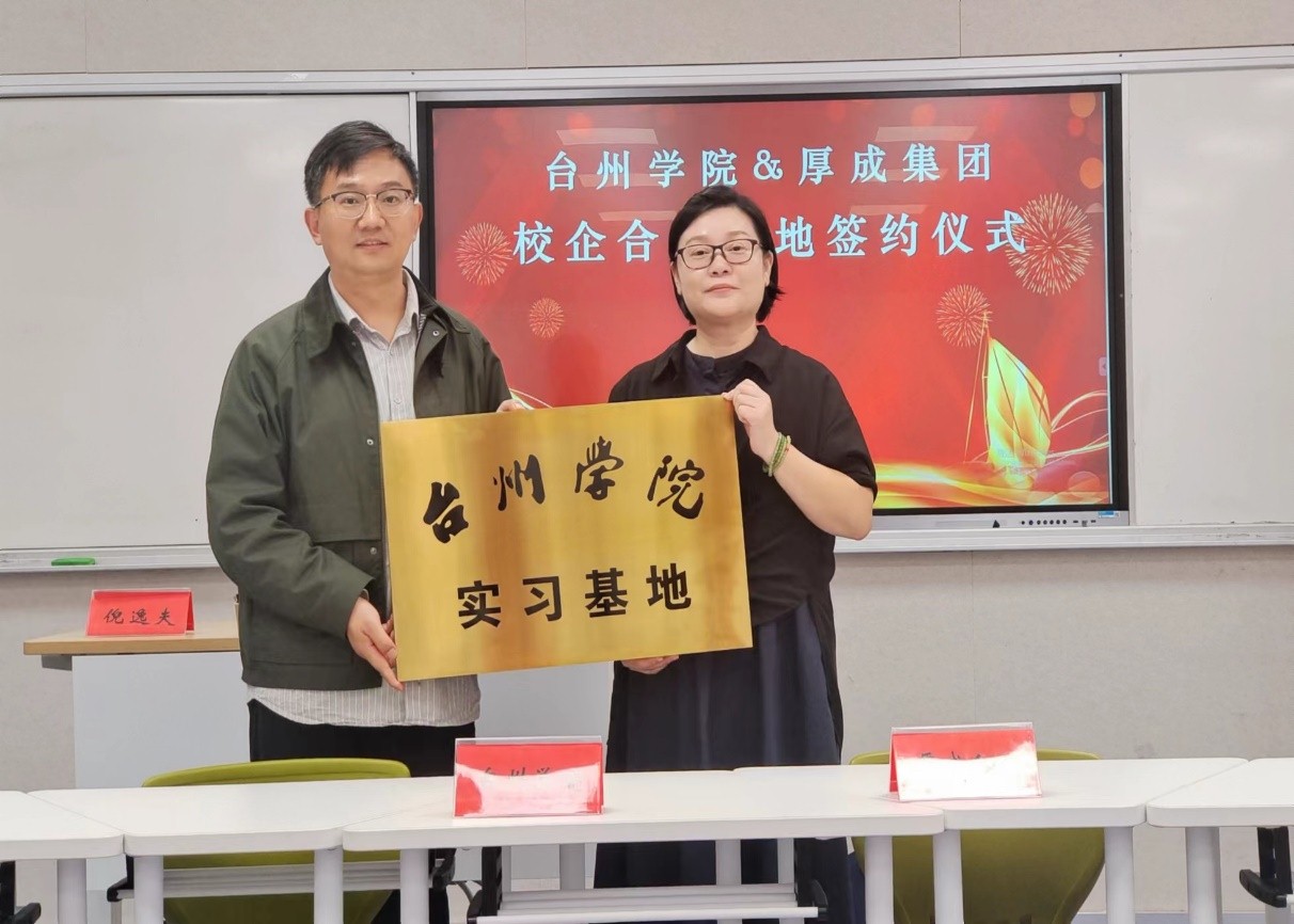 实践教育基地合作共建协议签约仪式在讲座现场举行。pa捕鱼官方网站副经理陈国栋与厚成人力资源集团有限公司总裁办公室主任陈嵩岚分别作为校企双方代表签订了合作协议。