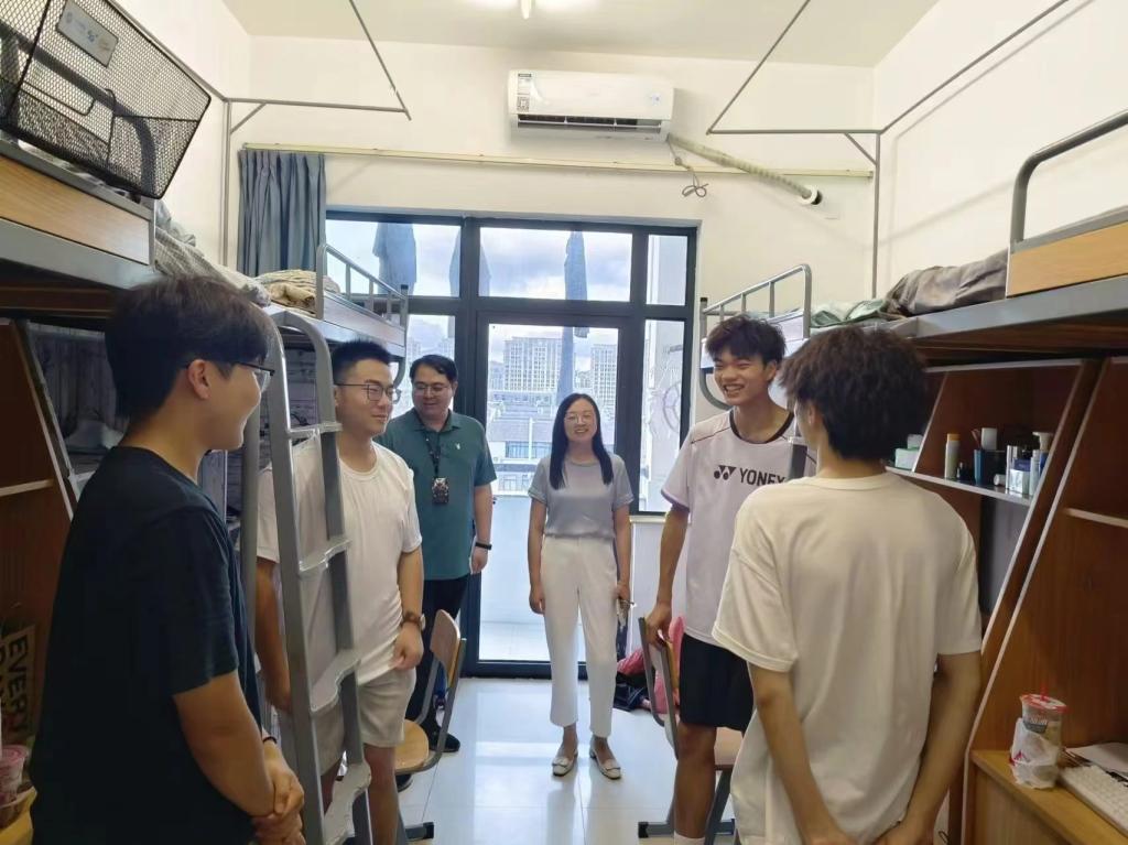 为了解新生情况,帮助新生更好适应老员工活,9月7号,在新生报到当天,pa捕鱼官方网站经理段文奇、党委书记马斌、副经理陈国栋、副书记陈斌岚以及新生班主任、辅导员、班助一起走访看望新生寝室。