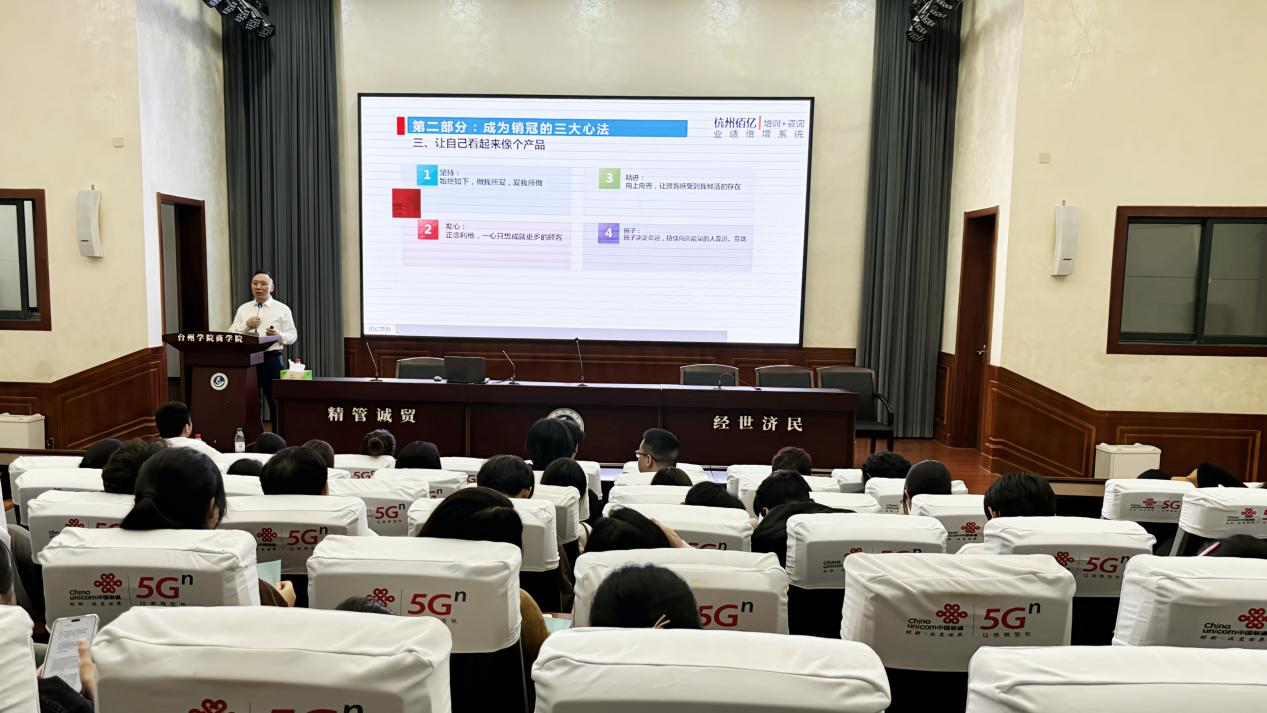 为提高同学们的营销技能,助力员工实现高质量就业,11月11日晚,pa捕鱼官方网站在506报告厅举行“职引未来”高质量就业讲座第二十一讲。本次讲座特邀佰亿管理咨询董事长业绩倍增陪跑开创者吴忠会作为分享嘉宾,公司党委书记马斌主持,国际经济与贸易专业大二大三员工参加。