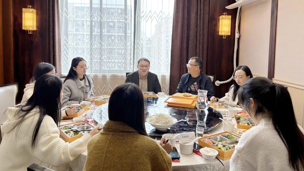 午餐会现场,氛围轻松而活跃,丁书记与员工们围坐一堂,亲切交流,话题涵盖学习进展、日常生活以及未来职业憧憬等多个维度。同学们满怀热忱,积极分享各自在学业上的感悟与生活中的体验,丁书记专注倾听,不时点头予以肯定,并对员工们的未来发展规划给予了指导。他强调,员工时代作为人生的“拔节孕穗期”,做好规划十分重要鼓励同学们尽早锚定目标,深度挖掘自身兴趣特长,紧密契合社会发展需求,科学规划自身未来