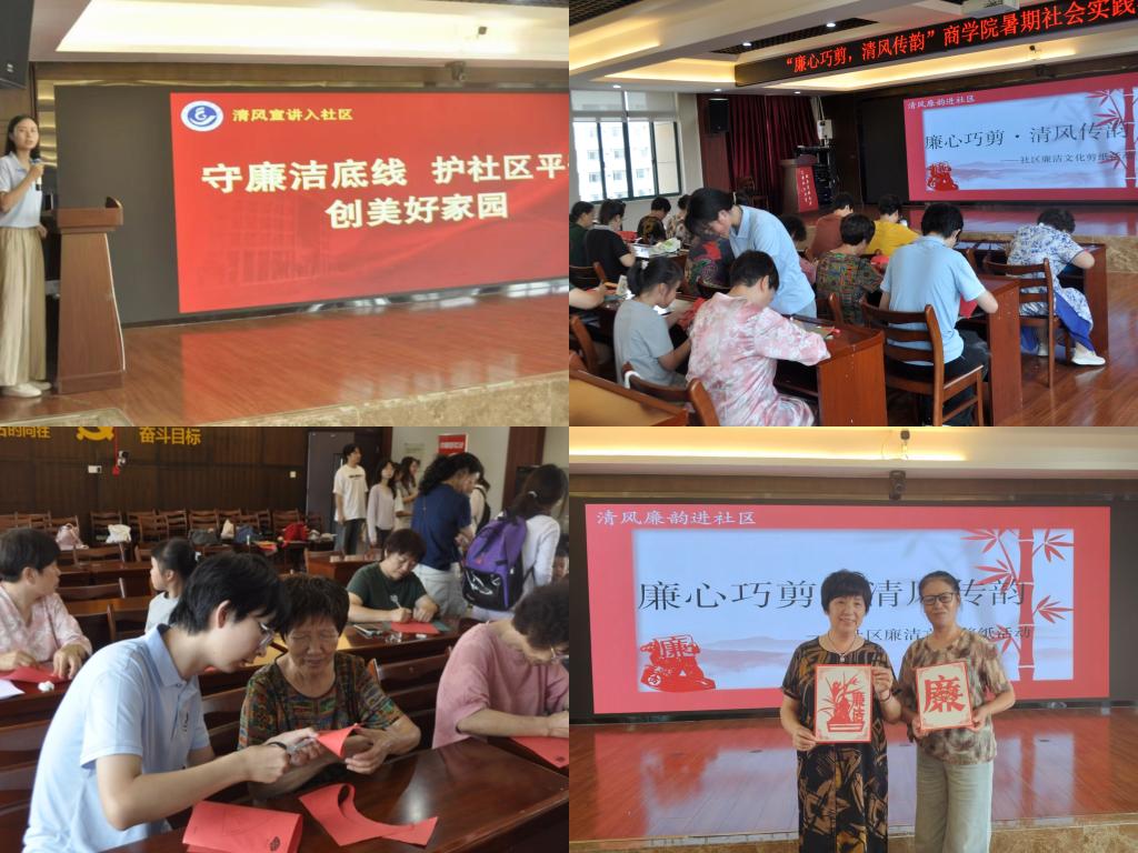在“七一”建党节来临之际,为弘扬中华优秀传统文化,传承红色基因,增强社区居民廉洁自律意识,6月30日,pa捕鱼官方网站“廉润商学”实践队走进云海社区,开展了一场"廉心巧剪,清风传韵”将廉洁文化融入趣味手工的非遗剪纸活动。