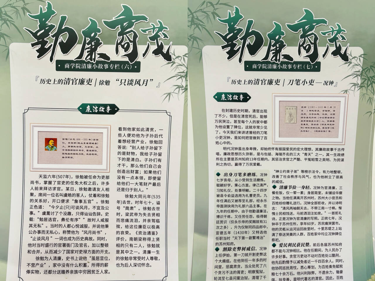 公司在毕业季通过“一标、一形、一廊、一制”等阵地建设,制作廉洁小故事展板,线上线下定期推出“勤廉商茂”清廉小故事专栏,培育好“勤廉商贸”廉洁文化品牌,厚植清廉之风以润校园,不断夯实毕业生党员的清正廉洁思想根基。