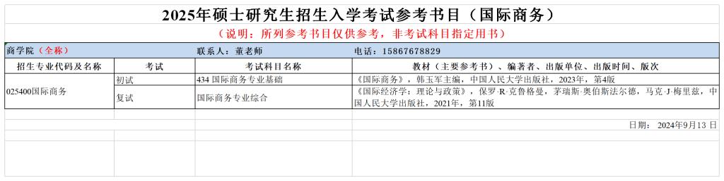 2025年硕士研究生招生入学考试参考书目(国际商务)