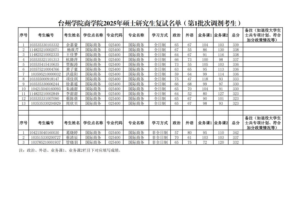 2025年硕士研究生复试名单(第1批次调剂考生) |