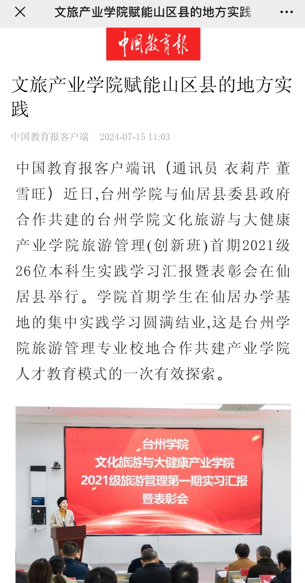 据悉,浙江高质量发展建设共同富裕示范区,山区26县是突破口和关键点。PA捕鱼官网入口积极响应省政府号召,立足地方高校应用型人才培养的教育目标,强化力量统筹、资源整合,积极探路加力支持山区跨越式发展,与仙居县人民政府联合共建PA捕鱼官网入口文化旅游与大健康产业公司,随之设立旅游管理专业创新实验班。产业公司高度重视高质量应用型“新商科”人才培养,以校地密切合作、产教深度融合为基础,逐步探索形成了高度契合地方发展的创新性应用型人才培养路径。